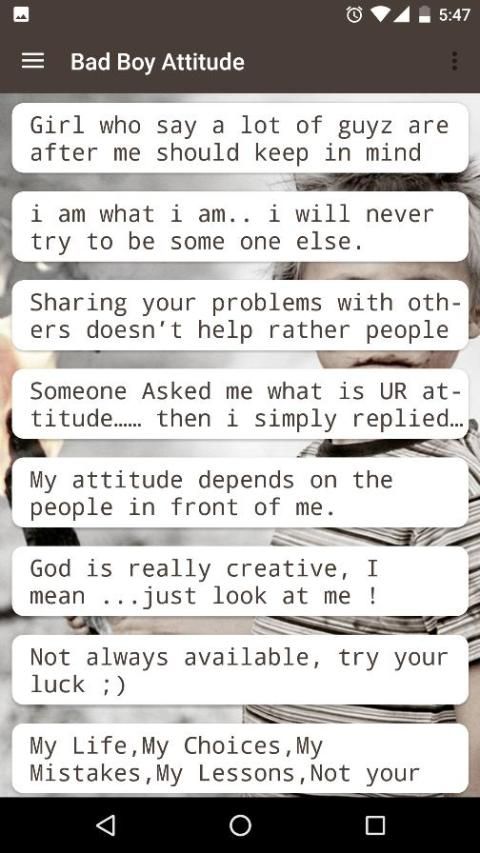9Apps سوق التطبيقات المجاني. 20,000+ مستحدمين يحملون Bad Boy Attitude احدث الاصدار مجانا كل أسبوع في يجب عليك ان تعرف هذا التطبيق الوحيد..9Apps هذه التطبيق الحلوووه تصدر في 2016-07-20 يمكنك تجد بعض التطبيقات المشبهة هنا..