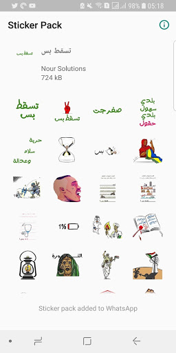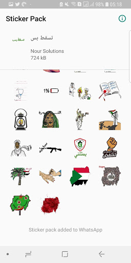 النسخة 1.1: تم ترتيب واضافة ملصقات ليصل مجموعها الى 30 ملصق يعبر عن الحال اليومي في السودان النسخة 1.0: نسخة من 18 ملصق سوداني بحت