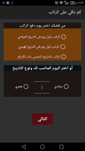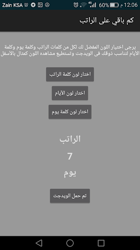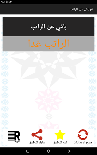 يساعد هذا التطبيق على معرفه عدد الأيام الباقية على الراتب وتستطيع الاختيار بين أن يكون الراتب فى