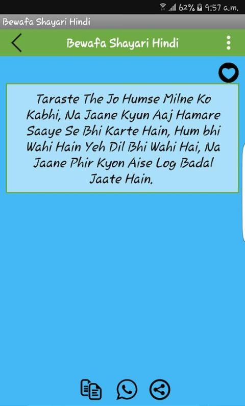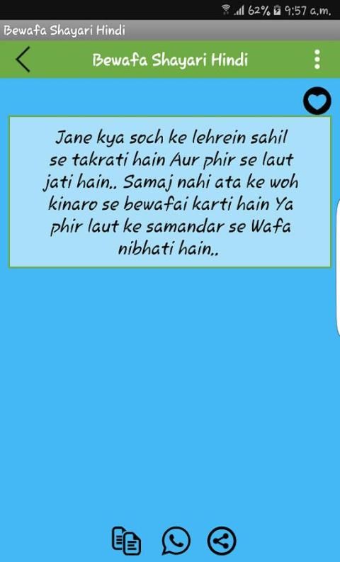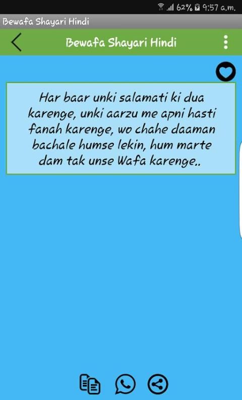 3. خيار المشاركة لتبادل Bewafa وShayari الهندية مع الأصدقاء والحب الخاص بك.