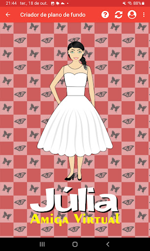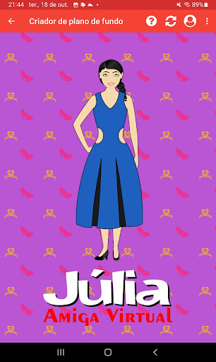تحتوي الواجهة على خيارات التخصيص وتتيح للمستخدم الاختيار من بين أنواع مختلفة من الخلفيات للمحادثات.من الممكن أيضًا ارتداء جوليا في الملابس والفساتين والملحقات الشخصية للمهن مثل Skatoboarder ، الممرضة ، رجال الإطفاء ، المعلم ، الخياطة ، العالم ، من بين آخرين