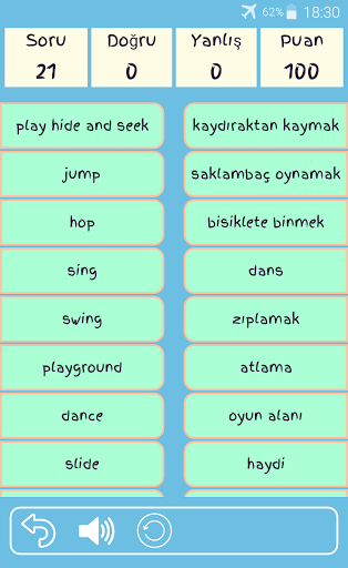 9) Bahasa soal jawab boleh diubah dengan pilihan Turki - Inggeris dan Inggeris - Turki.
