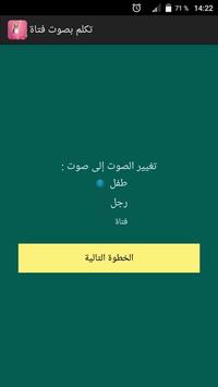 يوجد مجموعة من أصوات الفتيات بمختلف الأعمار كصوت فتاة صغيرة او صوت فتاة تبلغ من العمر 16 سنة وصوت فتاة صغيرة 10 سنوات و اصوات اخرى للنساء فوق 25 سنة ويمكنك أيضا تسجيله و تكلم بصوت فتاة عبرالهاتف ويمكنك مسح الصوت أو تعديله وأيضا بدون مشكل، تطبيق رائع لتغيير الصوت الى صوت فتاة اثناء المكالمة واضافة مؤثرات مضحكة ومسلية الى صوتك اثناء اى مكالمة. فالتطبيق يمكنك من التحدث بصوت فتاة مرح مع اصدقاءك وخداعهم، فهذا التطبيق بالفعل يحمل الكثير من المتعة والمرح .