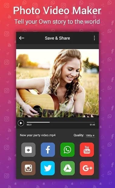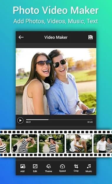 Photo Video Maker app helps you to make videos with you and your loved one photos with adding a song and convert them into a beautiful video. Create your own greetings with beautiful and lovely themes that are available in this app to integrate it with multiple photos and share it with your loved ones.