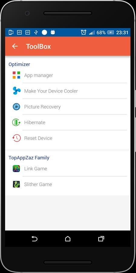 * برودة الجهاز: يعطي درجة الحرارة الحالية للهاتف وخيار لتبريد جهاز الكمبيوتر بنقرة واحدة