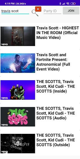2 - ابدأ حفلتك الخاصة عن طريق البحث عن فيديو يوتيوب وتسجيله عليه، أو عن طريق مشاركة هذا الفيديو من تطبيق YouTube.
