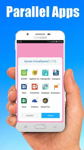 • يتم دعم جميع التطبيقات تقريبا حساب مزدوج على حساب المساحة المتوازية متعددة. بيانات حسابين لا تتدخل أبدا مع واحد مع الآخرين بعد الاستنساخ.