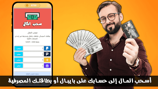 يمكنك إستبدال نقاطك التي جمعتها في داخل تطبيق أربح المال من هاتفك بالمال الحقيقي من خلال صفحة السحب، ويمكنك سحب المال مباشرة إلى محفظتك الإلكتروني أو إلى بطاقتك الإلكتروني أو حتى إلى حسابك على بايبال مباشرة.
