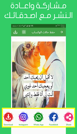 وظيفة التطبيق هي تنزيل ستات الفيديو والصور الخاصة باصدقائك واعادة نشرها في وسائل التواصل الاجتماعي او الاحتفاض بها في هاتفك. شاهد حالة صورة أصدقائك أو فيديو الحالة وأعد نشرها بسهولة. تعجبك حالة فيديو جهات الاتصال الخاصة بك ، ثم استخدم تطبيق تنزيل الحالة الخاص بنا واحفظ هذه الحالة. باستخدام تطبيق حفظ حالات الواتساب ، يمكنك حفظ أو تنزيل أي حالات الواتس اب أو صور أو مقاطع فيديو أو منشور من. تحميل الفيديو التي تحبها. أصبح الآن من السهل تنزيل الحالة والقصة ومقاطع الفيديو لأي أصدقاء تحبهم أكثر.