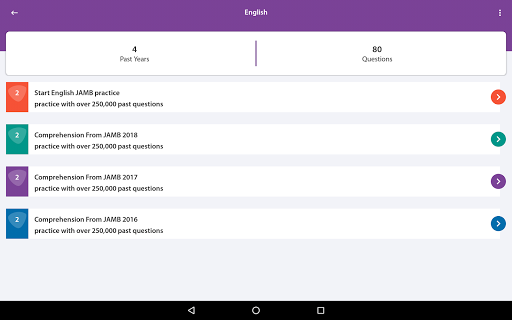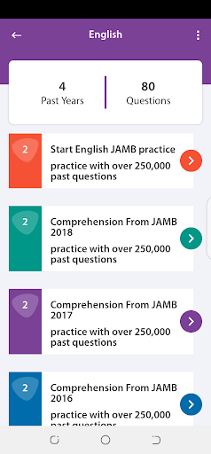 - احصل على الوصول إلى أكثر من 100000 سؤال وجيب عن امتحانات Jamb وغيرها من الامتحانات.