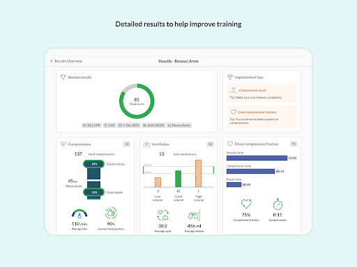 بعض الميزات الجديدة للمدربين: محدثة الدعم المبادئ التوجيهية العالمية للإنعاش ، وتقارير الأداء المتعمقة لجلسات ما بعد استخلاص المعلومات ، وتسمية المتعلم وترتيبها مع دعم Manikin ، وهي لعبة CPR المعاد تصميمها لدعم الترويج للترويجأفضل أداء جودة على السرعة ، ودعم خنق أهداف تعلم الأطفال للطفل الصغير QCPR.