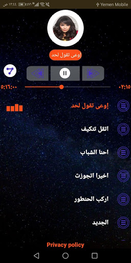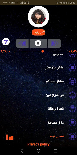 وفي الاخير نشكرك على اختيارك تطبيق أمينة من اجل الاستماع الى الاغاني الموجودة.
