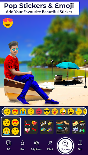 Beach photo editor has 20 stickers. Add photo stickers from the sticker collections. Select any sticker drag it to right position, zoom in or zoom out, rotate it, flip it and set it at the suitable position on the photo. You can reduce the opacity of stickers and photos also.