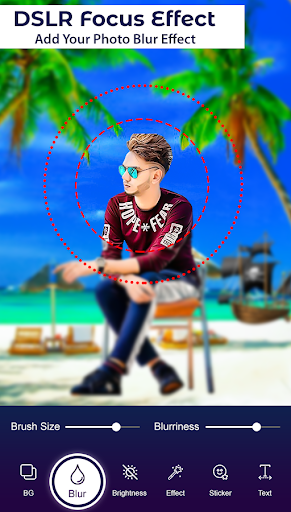 Beach photo editor has background erase option. It helps you to remove background of your photos. Eraser size can be adjusted. Make its size small or big. Use Zoom in & zoom out option to erase carefully without erasing the main picture.