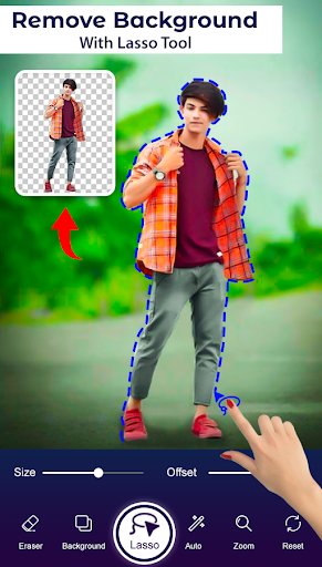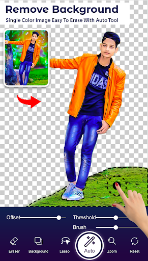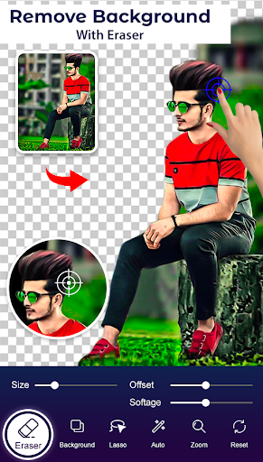 This photo editor has auto background eraser. It will help you to remove particular pixels from the background in single touch.