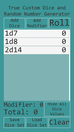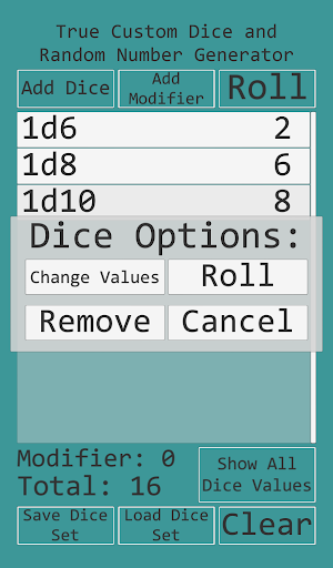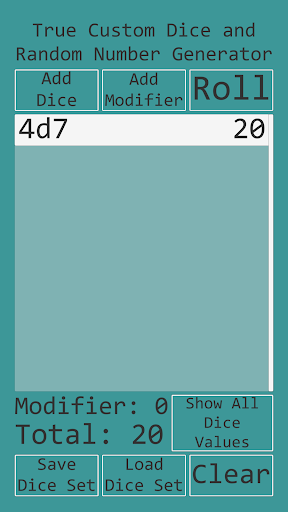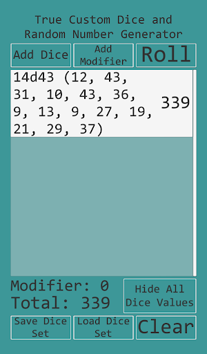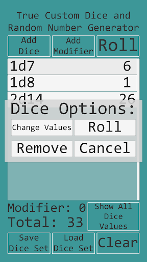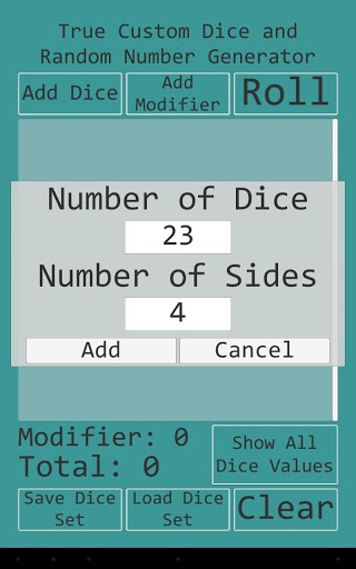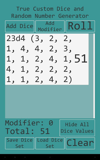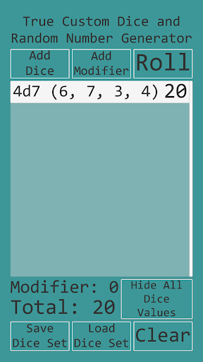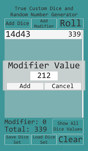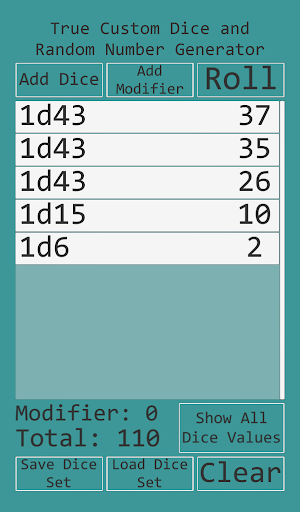 • Add or subtract an optional modifier value to the total of the dice