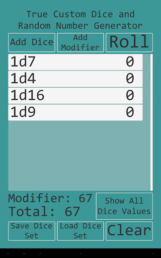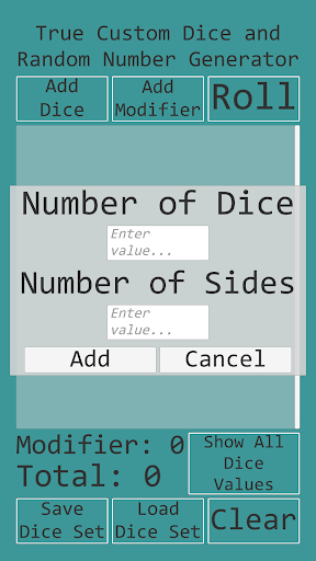 • Use any combination of any number of dice with any number of sides.