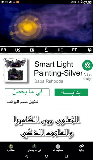بامكانكم تحويل هاتفكم الذكي إلى أداة تجديدية وطريقة مبتكرة وفريدة لفن الرسم بالضوء بفضل تطبيقنا نقترح عليكم عديد الأدوات من فرش وطوابع ضوئية والعديد من الألوان والأشكال من السّهل اعدادها وبرمجتها كي يتسنّى لكم ابداع صور في غاية الجمال وأصليّة وف