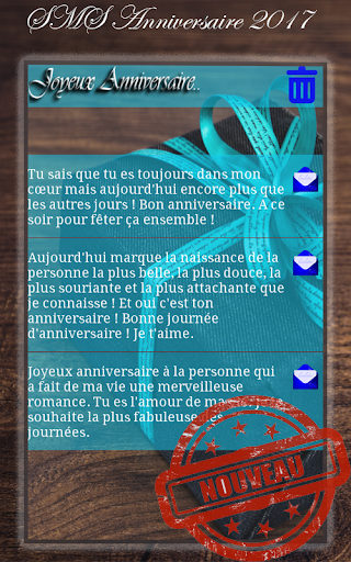SMS Anniversaire est une application qui vous offre une gamme d’SMS gratuite à envoyer sous forme texto ou a partager sur les réseaux sociaux, avec SMS Anniversaire vous allez bénéficier de :