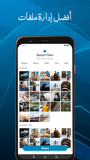 باستخدام المفتاح الذكي ، يمكنك مشاركة أي نوع من الملفات مثل الفيديو والصوت والصور وجهات الاتصال وما إلى ذلك. ينقل هذا المفتاح الذكي الملفات عبر Bluetooth أو عبر wifi. تأكد من تشغيل Wi-Fi أثناء نقل الملفات حتى لا تكون هناك مقاطعة في عملية النقل.