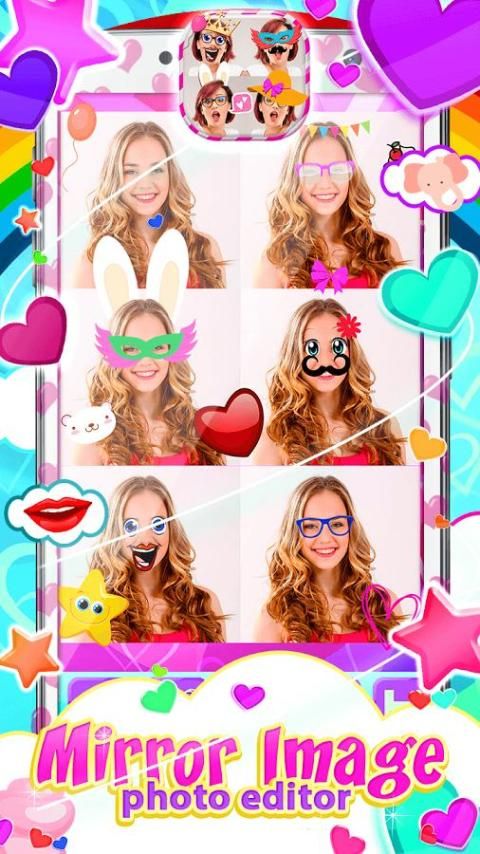 ღ مرحبا بك سحر مرآة الاستوديو! كن مبدعا مع آثار صورة المرآة والعشرات من المرشحات للحصول على صور لتزيين الفن التصويري الخاص لم يسبق له مثيل! استنساخ نفسك عدة مرات كما تريد مع هذه الصورة المذهلة الكولاج الخالق التطبيق! تزيين الصور الخاصة بك مع ملصقات جرلي لطيف، ووضعها في إطارات لطيف للحصول على صور، وتطبيق المرشحات لنظم بارد ومعجب بك مرآة الصورة المونتاج! تحميل مجاني ✿ محرر الصور مرآة ✿ وجعل أوهام الصورة مزدوجة مذهلة!