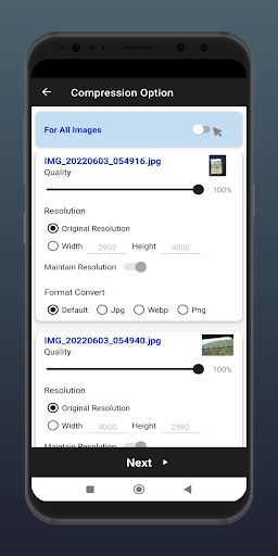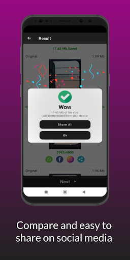 تطبيق ضاغط الصور مجاني ويوفر ميزة ضاغط الصور. يمكنك تقليل حجم الصورة MB إلى KB بواسطة مخفض حجم الصورة القوي. ضاغط صورة الدُفعات وضاغط الفيديو الدُفعات.