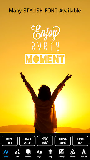 فقط قم بتنزيل خلفية HD المفضلة لديك أو اختر صورك الخاصة واكتب أفكارك أو أطيب التمنيات أو الاقتباسات على الصور. يحتوي فن النص أيضًا على أدوات لتخصيص عروض الأسعار أو استخدام عروض الأسعار أو الأفكار أو الملصقات أو الحلي أو الخطوط المصممة مسبقًا لإعطاء لمسة مناسبة لتصميمك.