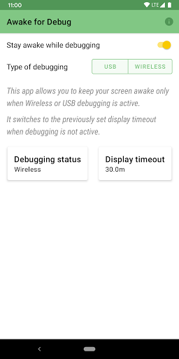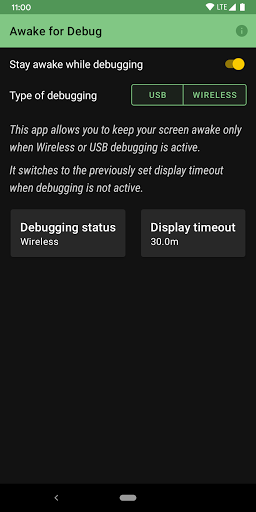 يتيح لك هذا التطبيق الحفاظ على الشاشة على * فقط * عند نشط تصحيح الأخطاء على الجهاز عبر جهاز WiFi (على Android 11) أو USB.