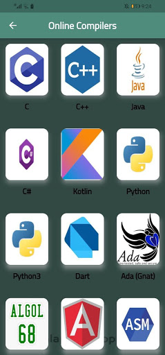 في هذا التطبيق يوجد اكثر من كومبايلر (محول برمجي ) لجميع لغات البرمجة.