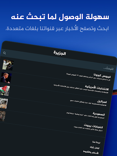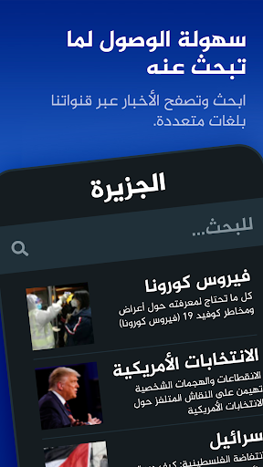 ابقي على اتصال بآخر الأخبار من جميع أنحاء العالم. شاهد البث الحي لقنوات الجزيرة المتعددة وتابع برامجك المفضلة. يمكنك. تصفح محتوى قنوات الجزيرة المختلفة بلغاتها المتعددة في تطبيق واحد حديث.