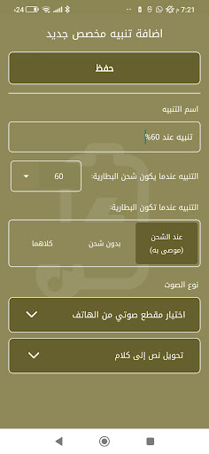 * اتاحة ميزة تنبيه مخصص عند نسبة شحن معينة مثلاً تنبيه عند شحن 28% او غيرها.