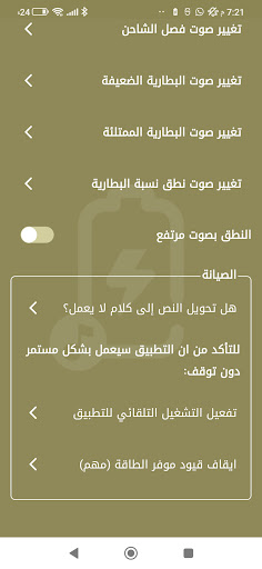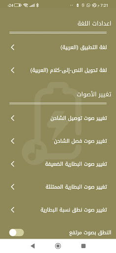 * يمكن نطق نسبة شحن البطارية كلما زادت نسبة الشحن بمقدار 10% وذلك يمكنك من معرفة شحن الهاتف بدون أن تذهب للهاتف وتمسكه.