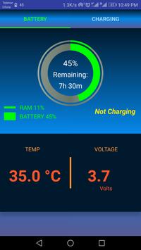Fast Charging also informs about remaining charging time, discharging time , battery health and many other information relevant to battery and RAM.
