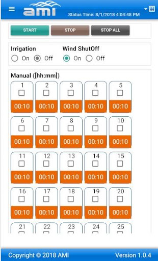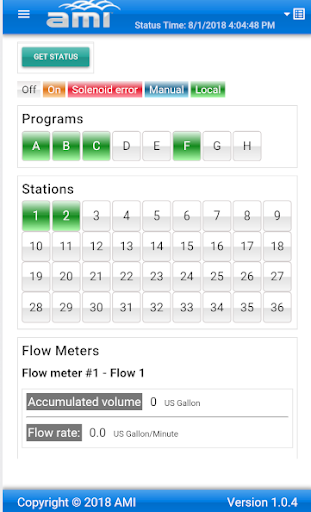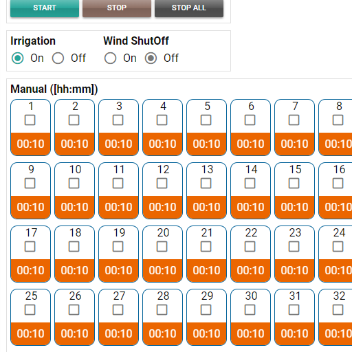 A minimal controller status and opening of valves including status page, manual page and programs page