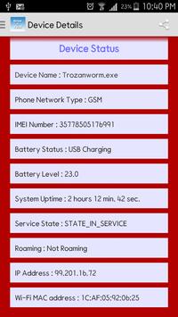 Info like IMEI number, Phone Type, Version, API Level and other will be displayed.