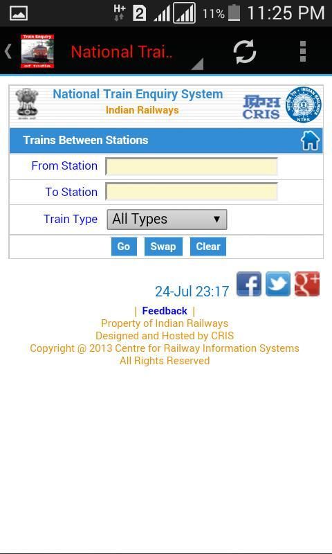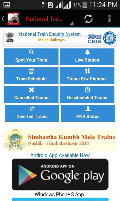 Indian Railways Reservation Enquiry, PNR Status, Running Status, Train Time Table, Train Route, Route Map, Arrival/Departure, Fare Table etc.