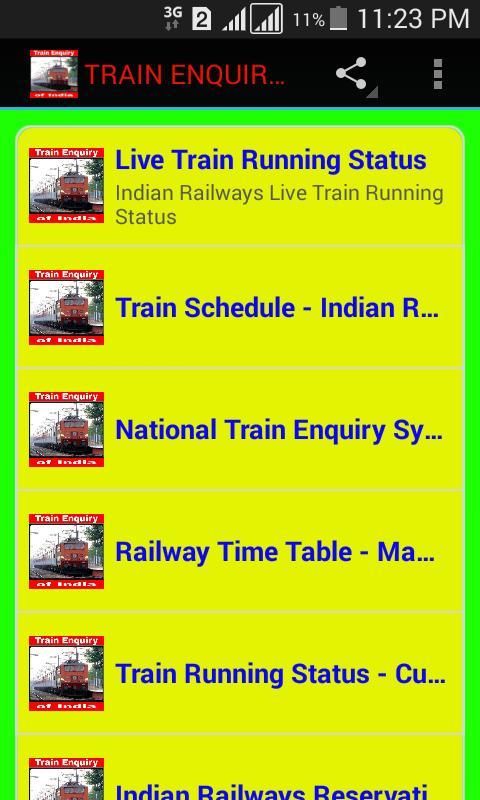 With the updating of mobile application, 10,000+ users downloaded TRAIN ENQUIRY OF INDIA latest version on 9Apps for free every week! A lot of functions and features are contained in this app. This hot app was released on 2015-10-23. It is available as a free download on 9Apps.