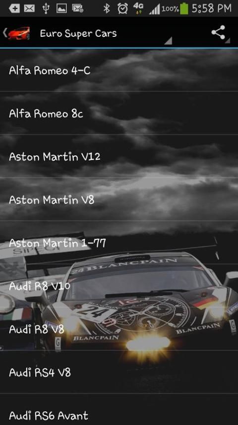 - Popular European super cars including: Audi, BMW, Ferrari, Mercedes, McLaren, Porsche