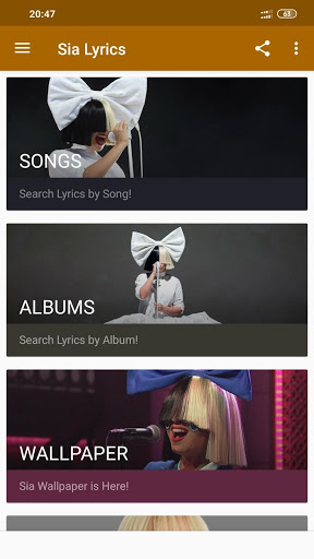 ابحث عن جميع الأغاني والألبومات المفضلة لديك من SIA وغني معهم. ابحث عن خلفية SIA المفضلة لديك لهاتفك مع هذا التطبيق!
