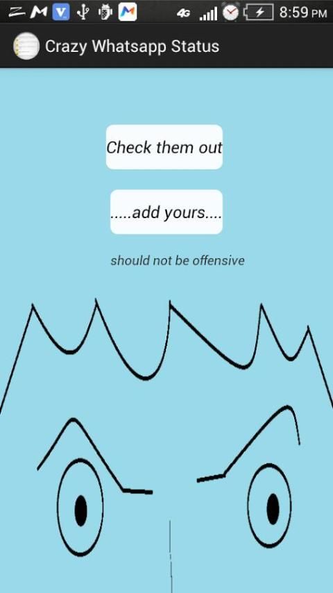 this app displays alist of crazy shared whatsapp status and allows users to also get to post theirs for other users to see and laugh.