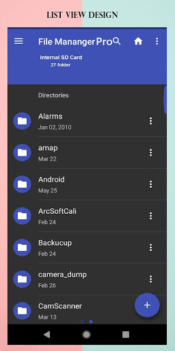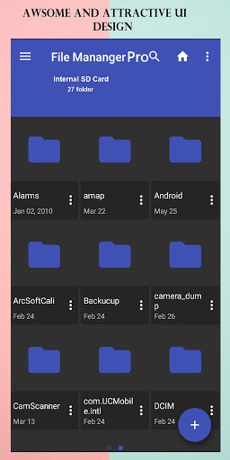File Manager Pro is easy and powerful file explorer for Android devices. It’s free, fast and full-featured. Because of its simple UI, it’s extremely easy to use. With File Manager Pro you can find how many files & apps you have on your device at a glance immediately after opening File manager Pro.