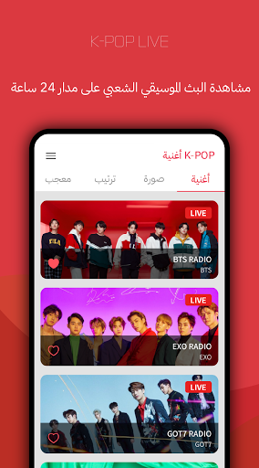 تطبيق بث موسيقي عالمي لمشاهدة برامج K-POP المشهورة على مدار الساعة والدردشة.