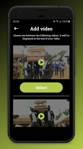 - أضف مقاطع فيديو Coffin Dance (5 ثوان من الأحذية و/أو معاينة الرؤوس)