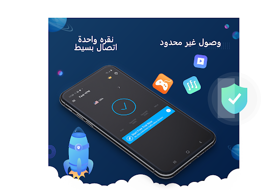 Fast VPN هو تطبيق فائق السرعة يوفر خدمة بروكسي VPN مجانية. لا داعي لإجراء أي تكوين ، ما عليك سوى النقر فوق زر واحد ، يمكنك الوصول إلى الإنترنت بشكل آمن ومجهول.