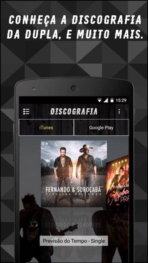 Agora você pode acompanhar tudo sobre a carreira da dupla Fernando & Sorocaba. É só baixar o aplicativo oficial e você terá acesso rápido a biografia, a agenda de shows, as principais notícias, discografia. Também terá acesso direto as redes sociais dos artistas, a projetos atuais e parceiros.