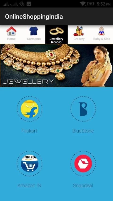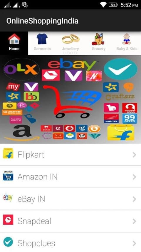 ليس لديك لزيارة كل موقع وتثبيت تطبيقاتهم فردي التطبيق shopping.This يشمل جميع مواقع التسوق شعبية في الهند بما في ذلك فليبكارت، والأمازون، Snapdeal، Myntra، Shopclues، Jabong.