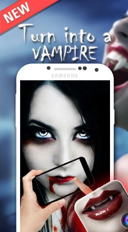 مصاصي الدماء صور الكاميرا! تحويل نفسك إلى مصاص دماء مع عيون ملونة، عيون عسلي، الأنياب وتوهج مصاص دماء. جعل التألق بشرتك! لون عينيك، وتنمو الأنياب وتحويل نفسك وأصدقائك! هذا تحرير الصور مجانا applicationis التطبيق آثار دماء صورة كبيرة كلما كنت ترغب في إضافة بعض آثار للماكياج رائع هالوين.
