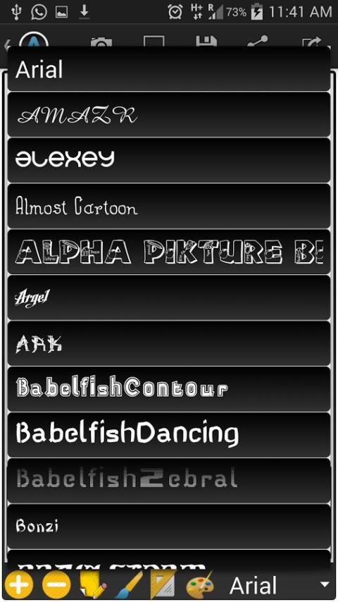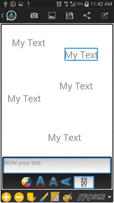 Important feature of the App : choose your own choice of fonts from the Internet, save them to the folder on the App, using the path SdCard/CustomText/Fonts/ , and the fonts will appear in the app on the spinner of the fonts.