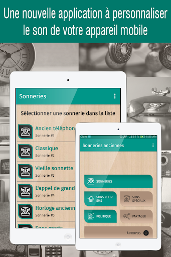 Ringtones القديمة هو تطبيق مصمم خصيصا لهاتفك المحمول، مع مجموعة كبيرة من القديم نغمات الهاتف التي يمكنك استخدامها ك: نغمات النغمات أو الأصوات الرسائل القصيرة أو التنبيه أو الإخطار.