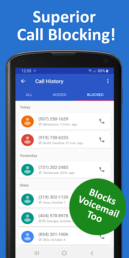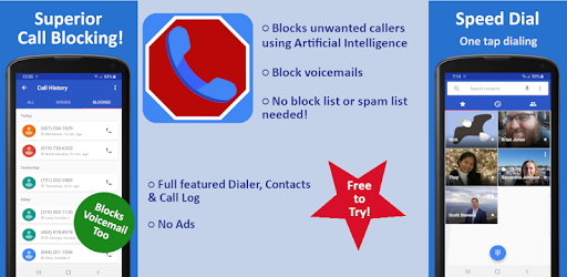 Call Block / Robocall Blocker, Voicemail Block, Caller ID, Smart Contacts Search, and Call Log History